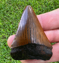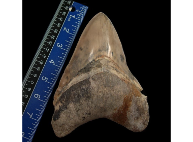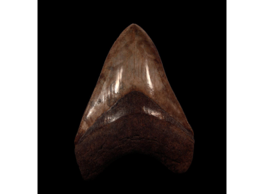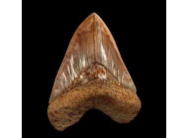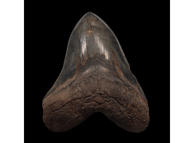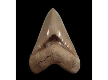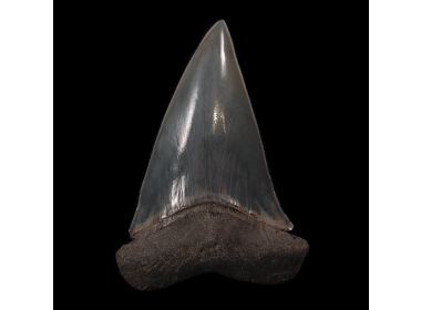 When you see a Megalodon tooth you will understand the enormous size of the species. The shark’s teeth can measure up to 7 inches in size, but most are slightly smaller than that. The Megalodon shark tooth is heart-shaped with serrated edges. The name Megalodon means large tooth.