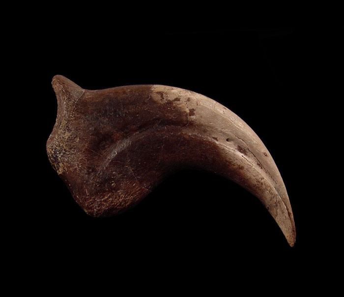 The Deinonychus exhibit is the world's sole genuine fossil example of its kind on display. The skeletons of Deinonychus and early birds are comparable, indicating that current birds are descended from small dinosaurs. Deinonychus could cling to its prey with its lethal front claws. Each foot swiveled one huge claw, ready to rip prey apart with a kick. When not in use, the claw was kept sharp by being stored out of the way. Deinonychus might have pursued Tenontosaurus. It's been speculated that Deinonychus lived and hunted in packs, based on the discovery of several hundred Deinonychus bones in a single quarry by paleontologists John Ostrom and Grant E. Meyer in southern Montana in 1964. Deinonychus remains are frequently found with skeletons of the ornithopod dinosaur Tenontosaurus, implying that it ate and possibly hunted them. The discovery of Deinonychus, a visibly active, nimble predator identified and described by John Ostrom, changed the scientific (and public) understanding of dinosaurs and opened the door to the hypothesis that dinosaurs may have been warm-blooded.