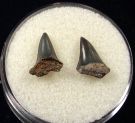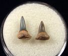 A matched pair of baby Great White shark teeth that can be used for ear rings. You do not see baby Great White teeth very often. Very nice anterior teeth. All teeth are Pliocene age - 4 million years old! Authenticity guaranteed.