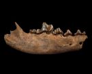 A Top Quality fossil European Badger (Meles meles) lower jaw from southern Germany. An October Fossil of the Month. These badgers lived in and around mountain caves from central Europe to Russia during the Ice Age. A perfect lower jaw with 10 teeth. No repair or restoration. Authenticity guaranteed. You can own a rare and wonderful story piece from the Ice Age. This piece is from an old German collection (1978).