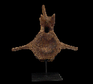 A rare Top Quality Triceratops horridus caudal vertebra from the late Cretaceous of northern North America. A November Fossil of the Month. Triceratops was a large ceratopsian dinosaur found in the Hell Creek formation which is known for three horns and a large frill protecting its neck. This is a caudal (tail) vertebra with exceptional detail preserved with great color and patina. You can see the vertebra surface is very rugous and the vertebra is very thick with a very round centra which are characteristics of Triceratops and distinguishes it from a Hadrosaur. Triceratops bones are more difficult to find. Please note that the left transverse porcess and the spinous process were professionally restored. This is now specimen compete. It is extremely rare to find vertebra that are complete. Legally collected on private land in Powder River Co., Montana. It comes with the custom steel stand as shown. A fantastic fossil overall for display. Authenticity guaranteed. An excellent big Triceratops vertebra. Note - International buyers will incur shipping cost. Weighs 3.7 pounds with stand.