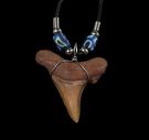 A Top Quality wire wrapped Sand Tiger shark tooth necklace from So. Carolina. This necklace includes light tan beads and a 24" leather strap tied at end. This is an authentic Miocene fossil shark tooth. Get ready for the beach! Type: Sand Tiger