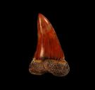 Learn More - Otodus megalodon$0.00The July Fossil of the Month is a TOP QUALITY, LARGE Megalodon tooth - upper jaw anterior tooth from Borrell Creek, So. Carolina. Note - This site produces a small number of teeth with copper-red colors with quality similar to the best teeth from the No. Carolina copper-red site. This tooth has a fantastic copper-red crown with high quality enamel and an extra large dark brown colored bourlette. The bourlette is perfect. Exceptional color. The serrations are sharp and essentially complete. Root is nicely articulated and complete. Excellent colors. NO repair! A GORGEOUS copper-red Megalodon tooth which is near perfect. I only have one of these teeth. Priced to sell! A Shark Week special! SC028 Size: 4-5/8" (3-3/8" W) Learn More