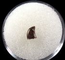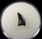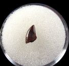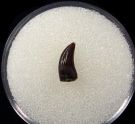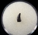 A RARE, Top Quality Dromaeosaurus albertensis (raptor) tooth from the Judith River Fm. of Montana. An August Fossil of the Month. This tooth is 3/8" which is a typical size. The enamel is excellent with a great brown color. This species is known for large posterior serrations that will turn upwards. Excellent large posterior (distal) and small anterior (mesial) serrations. No cracks. No repair. Legally collected on private land in the Judith River Fm., Wheatstone Co., Montana. Authenticity guaranteed. This is your chance to own a rare, top quality Dromaeosaurus albertensis tooth. Note - A gem jar will be included as photographed.