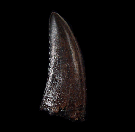 A Top Quality Tyrannosaur tooth from the late Cretaceous (Campanian) in northern North America. Please note that this tooth could Gorgosaurus or Daspletosaurus - see Detailed Discussion below. This tooth measures 1-13/16" - an excellent Tyrannosaur tooth. The enamel is high quality with excellent color. Anterior and posterior serrations are excellent. Serrated to the tip with an excellent unworn tip. No crack, repair or restoration. Legally collected on private land in the Judith River Fm., Hill Co., Montana. Probably an excellent Gorgosaurus or Daspletosaurus tooth based on size and roundness of the tooth cross-section. Authenticity guaranteed. An excellent collector's tooth. A Riker display frame is included.