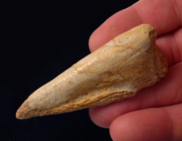 An Ultra Rare, TOP QUALITY Spinosaurus aegyptiacus foot (pes) claw from the Kem Kem region of Morocco. An excellent manus claw with excellent natural color and patina. The surface quality is exceptional with no pitting, nicks or wear! Great white patina. Fully inflated. The articulated end is complete. No crack fill. No restoration. An exceptional quality, collector's claw. Authenticity guaranteed. I do not see fine quality Spinosaurus claws very often and this isa good one. This is what a real Spinosaurus claw looks like. Spinosaurus claws with this quality are quite rare!