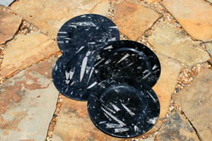 The Plates and Platters shown on this page are all handcrafted in Morocco. They emphasize the exceptional natural beauty of the fossilized Ammonite and Orthoceras. These 345 million year old sea fossils are found in an area that is now desert. Each plate and platter is distinctively one of a kind, hand selected, and top quality. Please allow us to choose for you.