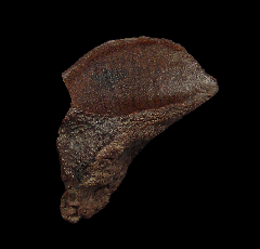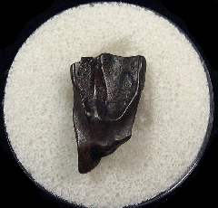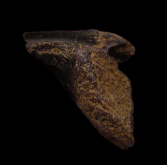 A Top Quality, Triceratops horridus shed tooth or "spitter" tooth with a large crown ridge from the late Cretaceous of northern North America. Triceratops is a large ceratopsian dinosaur found in the Hell Creek formation. The enamel is excellent quality with nice color / patina. This tooth is commonly called a "spitter" tooth as it was worn out, released, and replaced. No cracks. No restoration. Legally collected on private land in the Hell Creek Fm., Carter Co., Montana. Authenticity guaranteed. An excellent, large Triceratops spitter tooth!