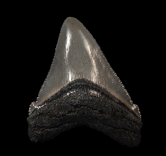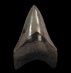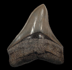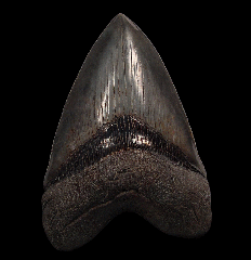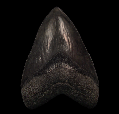 An EXTRA LARGE, TOP QUALITY Mosasaurus beaugei tooth from the Cretaceous of Khouribga, Morocco. Excellent preservation. Note - the well defined flat ridges running the length of the crown - a M. beaugei characteristic. Wide base. One crack. No restoration. A massive Mosasaur tooth from the hero of Jurassic World! This is one of the more difficult of the large Mosasaur species to find. An excellent collector's Mosasaur tooth. Authenticity guaranteed. A BIG Mosasaurus beaugei tooth!
