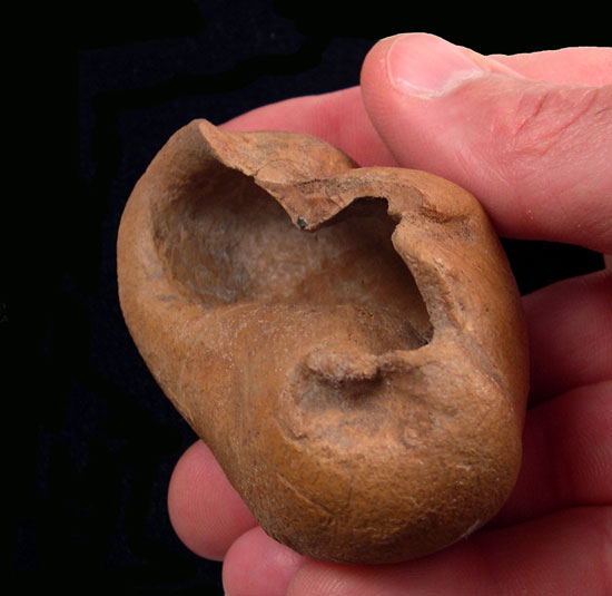 A rare EXTRA LARGE, Top Quality Whale Ear Bone, tympanic bulla, from the Lee Creek mine, Aurora, No. Carolina. This is an essentially complete ear bone. Incredible preservation and color. It is a Miocene tooth from the Pungo River Fm. An excellent collector's tooth. Authenticity guaranteed. Complete whale ear bones are extremely difficult to find. A rare specimen!