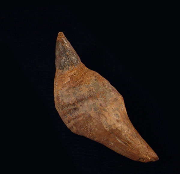 A LARGE Scaldicetus sp., a Sperm whale, tooth from Caldera area of Chile. An incredible late Miocene Sperm whale tooth from the Bahia Inglesa Fm. This tooth has great preservation and a fantastic brown color There a small amount of matrix on the rear. Makes a great display. No repair or restoration. Authenticity guaranteed. Unfortunately there are no teeth coming from this site 19 years! My largest remaining whale tooth.