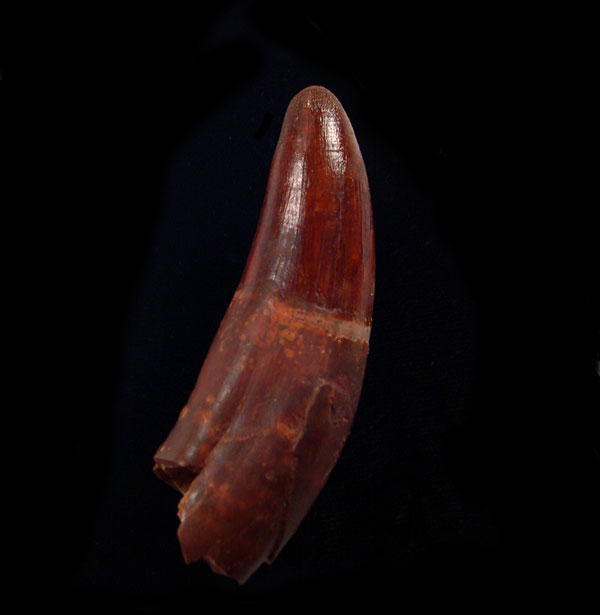 An EXTRA LARGE, Top Quality Elosuchus cherifiensis crocodile tooth from the Kem Kem region of Morocco. Incredible detail and red color. Wide base. These crocodile teeth are Mid Cretaceous epoch, Cenomanian stage (96 million years ago). An excellent collector's tooth. No repair or restoration. Authenticity guaranteed.