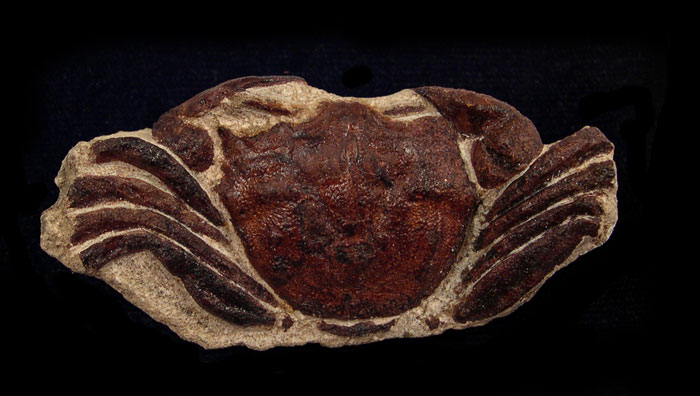 An excellent, LARGE well preserved Miocene fossil crab, Pinnixia galliheri, from Carmel, California. This crab is 8 million years old and found in the Monterrey Fm. Matrix is 3" x 2". Authenicity guaranteed.