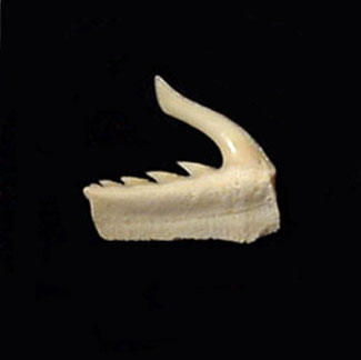 A Top Quality Weltonia ancistrodon tooth from the Khouribga phosphate mining area of Morocco. This is a lower jaw tooth with seven primary cusps. Great preservation and color. The root is good - very unique & difficult to find! Not a perfect tooth. Authenticity guaranteed. This rare piece is from an old collection!