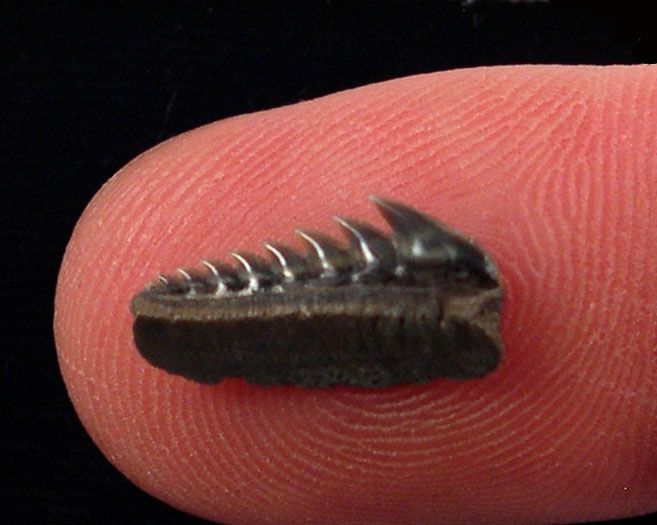 A rare, GEM lower Eocene age Hexanchus agassizi lower jaw tooth from the Isle of Sheppey, Kent, UK. Very well preserved - excellent condition.