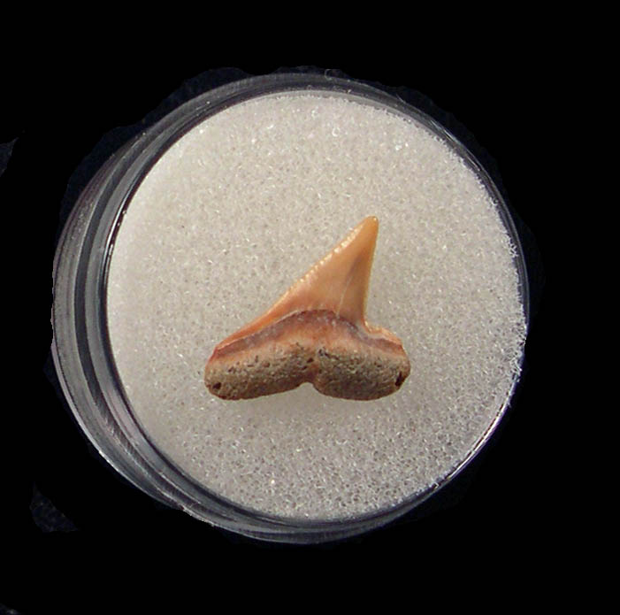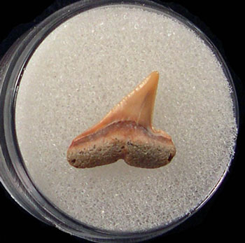 An excellent Sphyrna arambourgi tooth from Seminole Co., Florida. A very nice Hammerhead tooth. Oligocene age. F887 is the tooth on the right. Authenticity guaranteed.